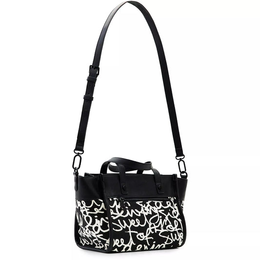 Desigual Black and White Bag with Dual Handles and Adjustable Strap