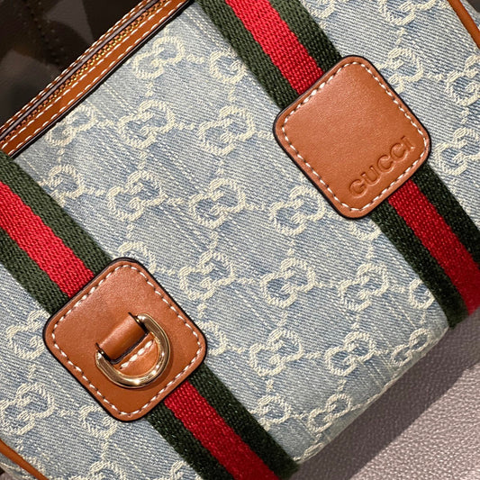 Gucci Denim Crossbody Bag with Web-Strap Detailing