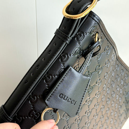 Gucci Black Guccissima Monogram Leather Shoulder Bag
