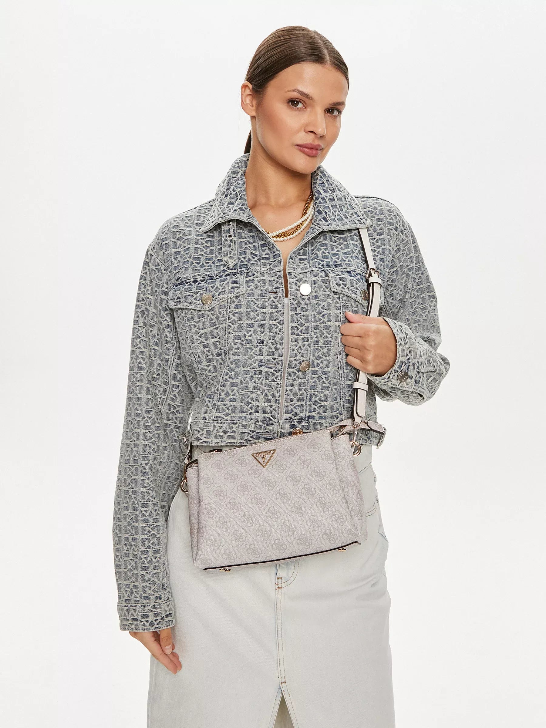 This Guess handbag is designed with everyday practicality in mind. Its spacious interior easily accommodates your phone, wallet, cosmetics, keys, and other essentials. Lightweight yet sturdy, it ensures maximum comfort throughout the day.